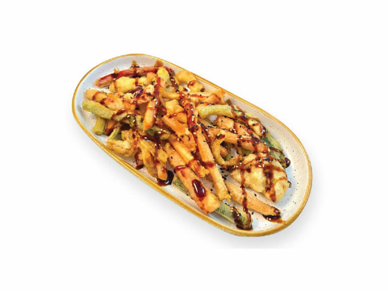 Tempura de verduras de temporadacon salsa teriyaki y sésamo