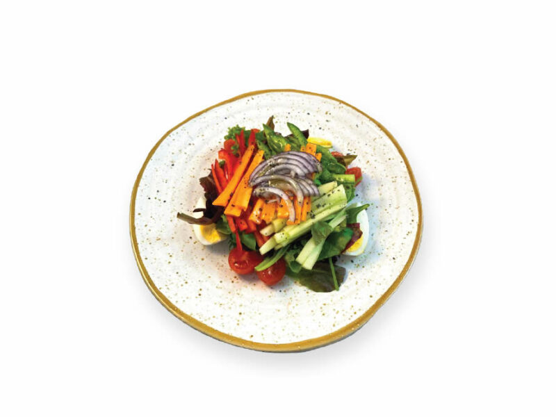 Ensalada verde con lechuga, huevo, zanahoria…